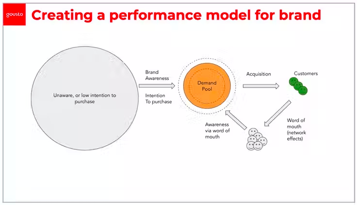 Gousto developed a simple performance model illustrating how brand activity would create a ‘demand pool’ of future potential customers.