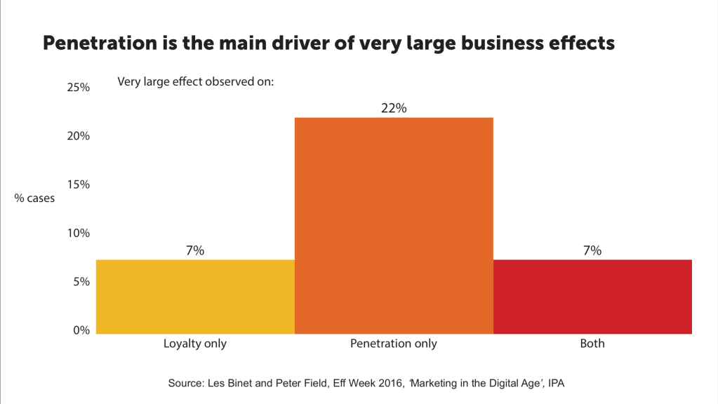Brands are probably the most powerful and versatile business tool ever invented. And yet there’s a growing breed of business leaders who behave as if creating a famous, preferred, distinctive brand is an unnecessary luxury. Who think it’s enough to pay for PPC, optimise the SEO, create content, build a digital eco-system, communicate one-to-one with existing customers ‘for free’, or re-target prospects who’ve signalled some level of intent. Of course there are individual businesses that seem to be ok doing things this way, but if there’s a large body of evidence (not simply a few case studies) that proves the above approach can be used to drive long-term profitable growth across a range of categories, without investment in brand-building, I’d love to see it.