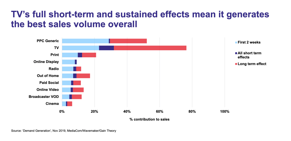 58% of the sales impact of all marketing communications activity is delivered in the long-term[11]: if you’re only looking at the short-term impact (ie via attribution modelling) you won’t see the full value of your investment.